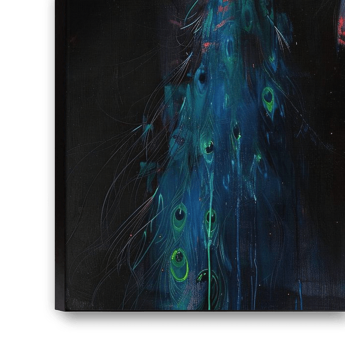 Details: Pfau, Neon, Gemälde, Tier, Vogel, bunt, abstrakt, modern, Schwanzfedern, Eleganz
