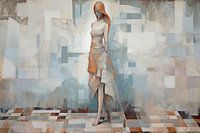 Gemälde Quietude - Quietude ist ein wunderschönes abstraktes Gemälde, das ein Gefühl der Gelassenheit ausstrahlt. Die gedämpften Farben und abstrakten Formen verleihen dem Bild ein Gefühl der Gelassenheit. Die Farbpalette ist weich und angenehm, und die Struktur der Farbe ist sichtbar. Die weibliche Figur auf dem Gemälde ist abstrakt…