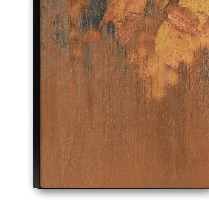 Kunstwerk mit malerischem rostrotbraunem Herbstlaub und Industrieatmosphäre.