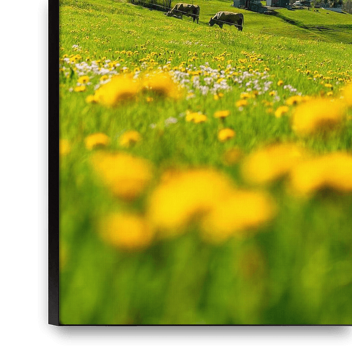 Ihre gewählte Kunst auf Leinwand, gespannt in einem Aluminiumrahmen. Schnell und einfach austauschbar für eine frische Ausstrahlung und ganz nach Ihren Wünschen.