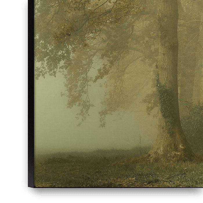 Bestelle dieses Landschafts-Wandbild Malerischer Herbstwald im Nebel von Peter Bolman als Reproduktion auf Leinwand, Alu-Dibond, als Poster, Fototapete oder Acrylglasbild.