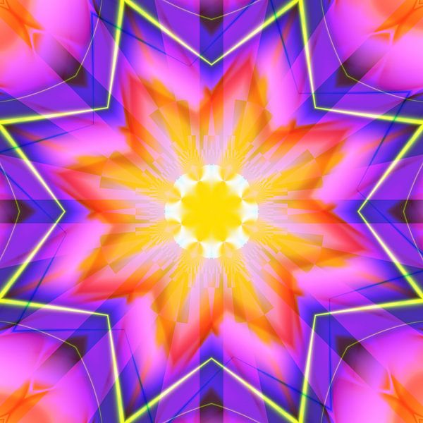 Dieses Mandala entstand aus fraktalen grafischen Mustern und Kaleidoskop-Effekten. Jedes Bild hat seine eigene heilsame Schwingung und eröffnet dem Betrachter eine neue Welt.
