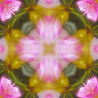 Mandala in sanften Farben, vorherrschend in rosa und grün, aus einem reellen Bild entstanden.