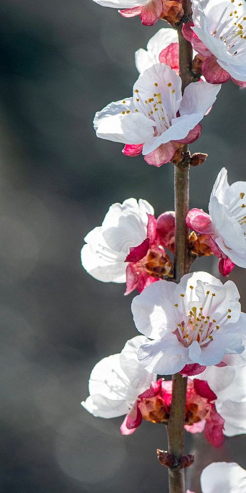 Im zeitigen Frühjahr blühen in Südeuropa die Mandelbäume. Die Bäume blühen mit weißen oder zartrosa Blüten, bevor die Blätter erscheinen. Die Blüten locken Bienen und andere Insekten an. Die schönen Blüten haben ein dunkelrosa Herz und Hüllblätter.
