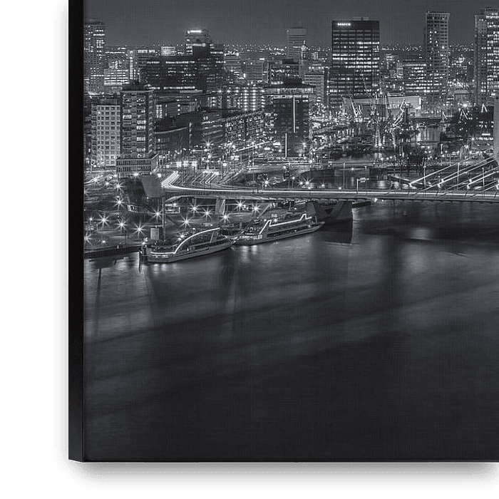 Dieses Foto der Skyline von Rotterdam wurde an einem Abend im Dezember 2014 aufgenommen. Das Foto wurde von einem Wohnturm am Wilhelminapier aufgenommen, dessen Aussicht mich sehr beeindruckt hat. Ich hoffe, dass ich dieses Gefühl mit dieser Fotoserie mit anderen Menschen teilen kann. Das Foto zeigt u.a. die Erasmusbrücke und das…