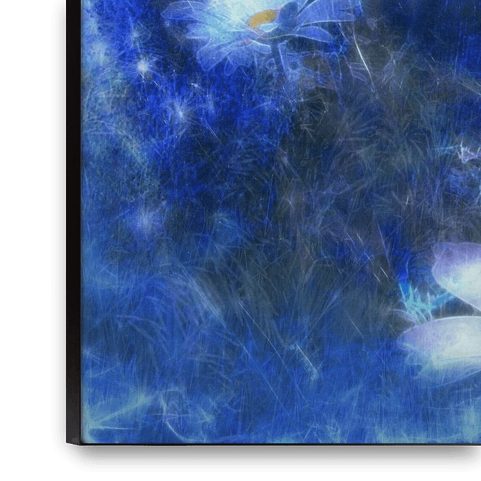 Bestelle dieses Blumen-Wandbild Margeriten mit blauem Hintergrund von Claudia Gründler als Reproduktion auf Leinwand, Alu-Dibond, als Poster, Fototapete oder Acrylglasbild.