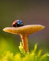 Bestelle das Foto Marienkäfer auf einem Pilz von Rinie Egas als Reproduktion auf Leinwand, Alu-Dibond, als Poster, Fototapete oder Acrylglasbild.