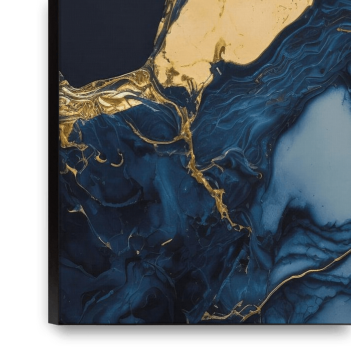 Bestelle dieses moderne Wandbild Marmor gold blau schwarz 2 von Digitale Schilderijen als Reproduktion auf Leinwand, Alu-Dibond, als Poster, Fototapete oder Acrylglasbild.