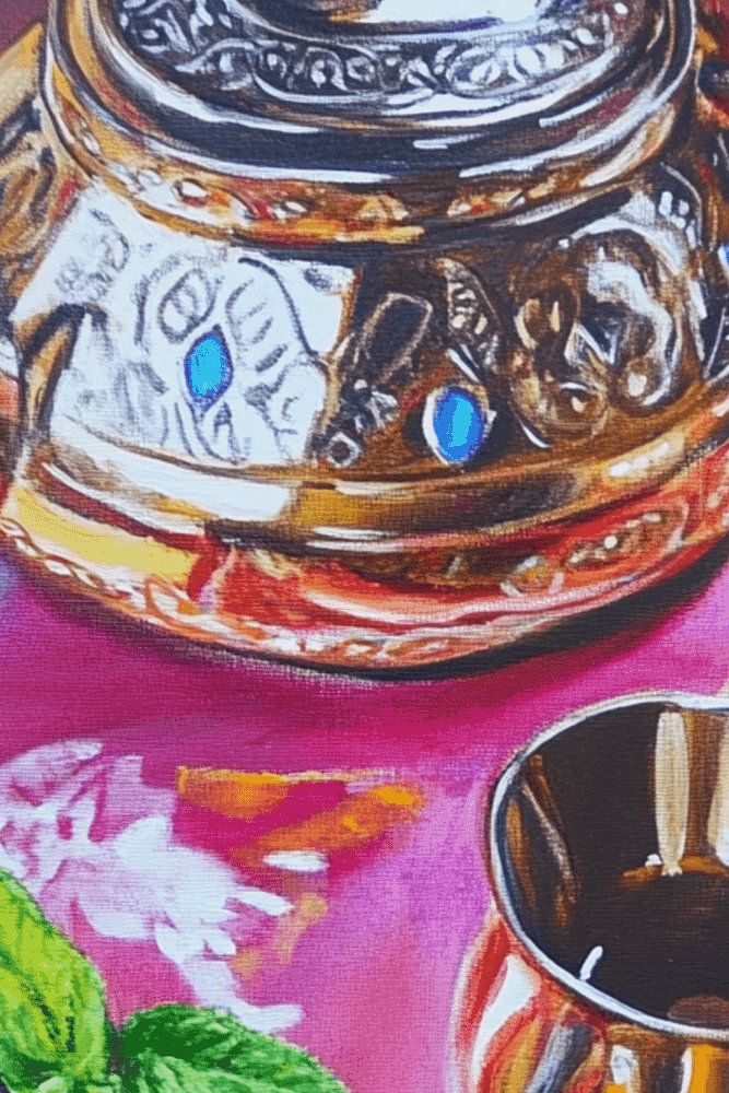 Das Servieren von Tee ist ein Moment der Gastfreundschaft, bei dem das Anbieten des Getränks von Gesprächen und Geschichten begleitet wird. Dieses Ritual unterstreicht die Bedeutung des Zusammenkommens und der Geselligkeit, die in der marokkanischen Kultur eine zentrale Rolle spielen. Das Teeservice ist daher viel mehr als nur ein Gebrauchsgegenstand: Es ist ein Symbol für die luxuriösen Traditionen und die überlieferte Handwerkskunst sowie für die Authentizität der marokkanischen Lebensart.