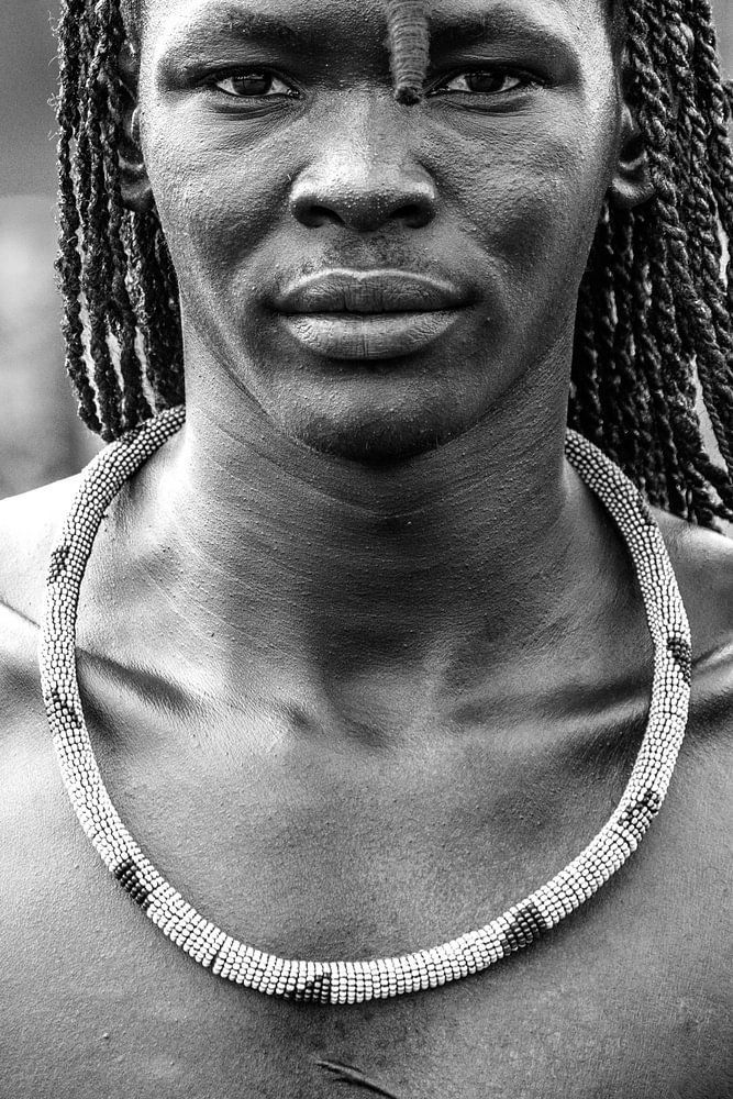 Wunderschönes Porträt eines männlichen Mitglieds des Massai-Stammes aus Kenia. Der Mann trägt traditionelle Kleidung und Schmuck.