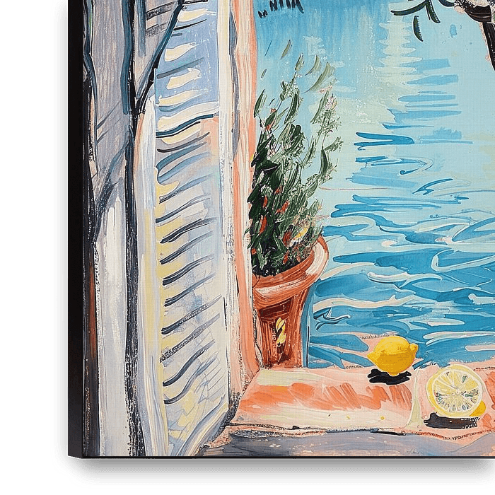Bestelle diese Malerei Matisse Style Open Window von Niklas Maximilian als Reproduktion auf Leinwand, Alu-Dibond, als Poster, Fototapete oder Acrylglasbild.