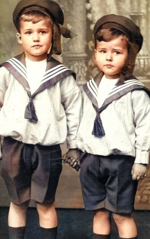Die Jungen "van Bokhoven" als Matrosen in einem Haager Fotostudio fotografiert.