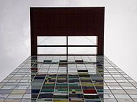 Moderne Architektur in den Bürogebäuden des Medienhafens in Düsseldorf (Nordrhein-Westfalen, Deutschland).