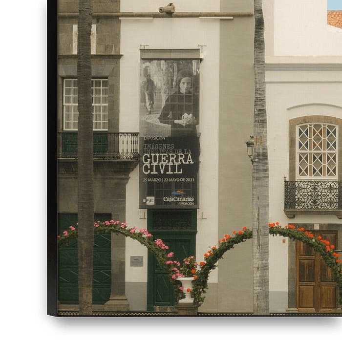 Bestelle dieses Landschafts-Wandbild Mediterrane Harmonie – Altstadt von La Palma mit Palmenplatz von NZME Photography als Reproduktion auf Leinwand, Alu-Dibond, als Poster, Fototapete oder Acrylglasbild.