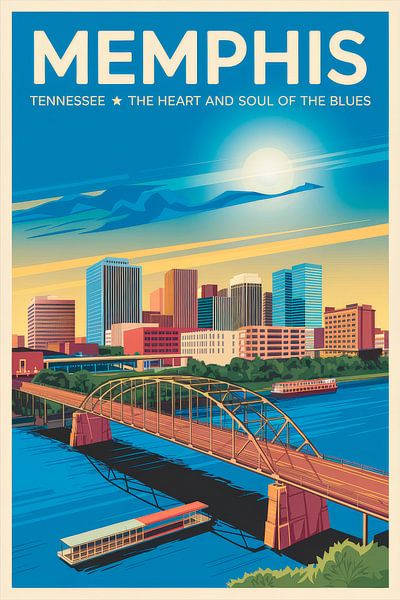 Bestelle diese Illustration Memphis, Tennessee Vintage Travel Poster von Poster Art Shop als Reproduktion auf Leinwand, Alu-Dibond, als Poster, Fototapete oder Acrylglasbild.