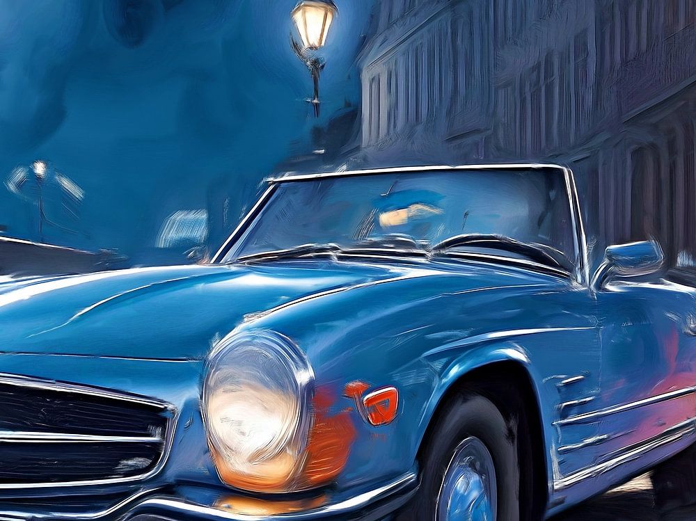 Mercedes-Benz SL Cabriolet nachts in der Stadt