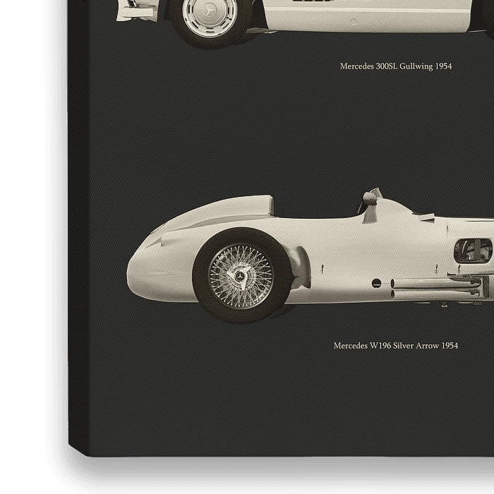 Bestelle das digitale Kunst Bild Mercedes Benz legendärste Modelle von Jan Keteleer als Reproduktion auf Leinwand, Alu-Dibond, als Poster, Fototapete oder Acrylglasbild.