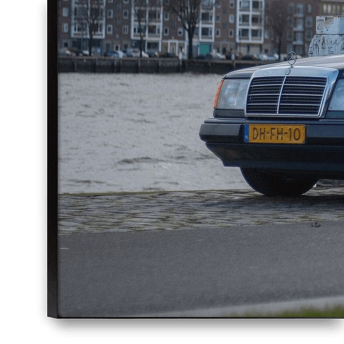 Bestelle dieses Rotterdam-Wandbild Mercedes w124 von Sebastian Stef als Reproduktion auf Leinwand, Alu-Dibond, als Poster, Fototapete oder Acrylglasbild.