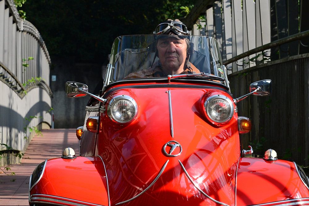 Was für ein Flitzer, dieser Messerschmitt Kabinenroller. Seit 1957 fliegt er als Kleinwagen mit seiner schnittigen Flugzeugform und 10 PS über unsere Straßen. Sein Ruf ist weltweit legendär und die Fangemeinde riesig. Der Roadster ist das begehrte Kabrio unter den kleinen historischen Flitzern.