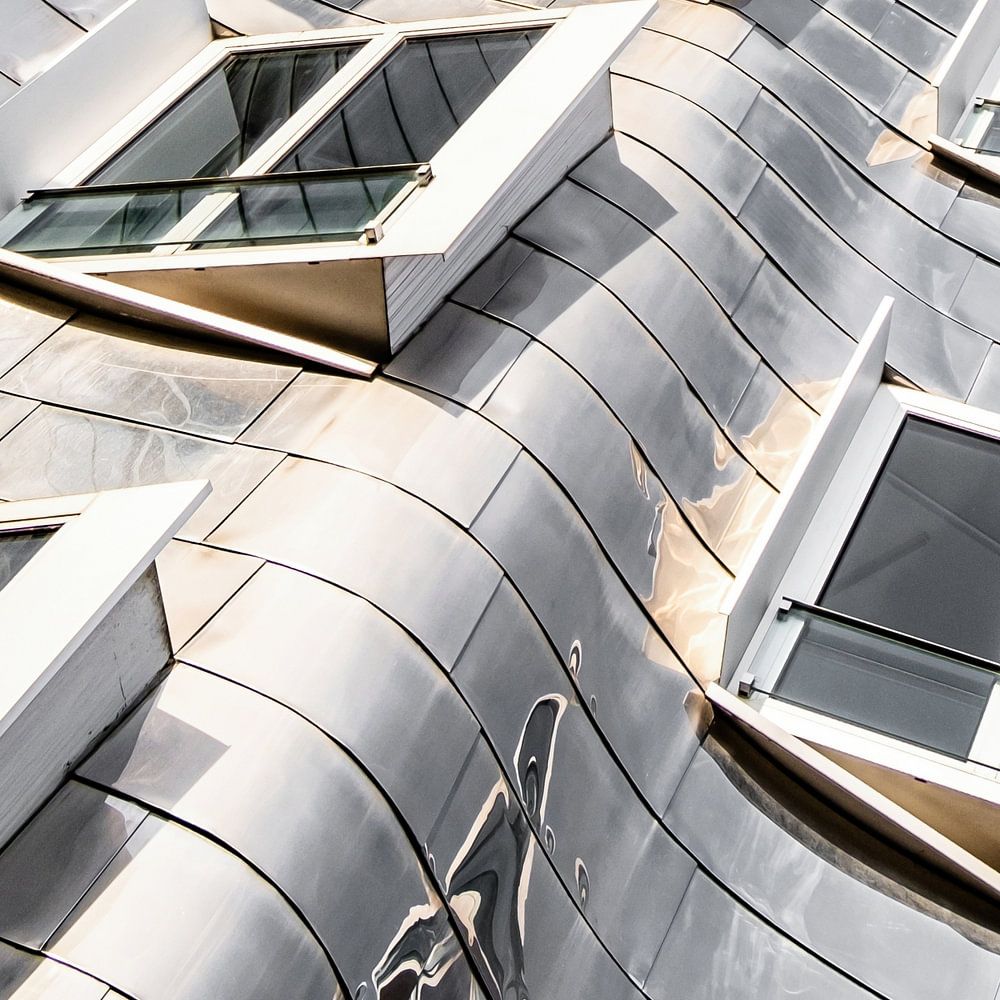 Metallfassade mit Fenster Details Gehry Bauten Neuer Zollhof in Düsseldorf Rhein Deutschland