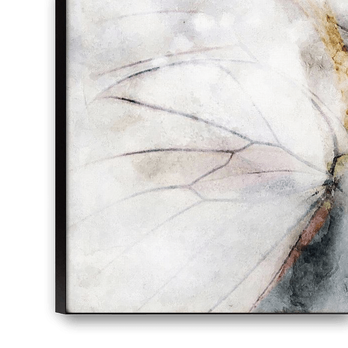 Surreale abstrakte Porträt einer Frau mit Schmetterling, Konzept Metamorphose. Mixed-Media-Fantasy-Gemälde in Grautönen mit Goldakzenten