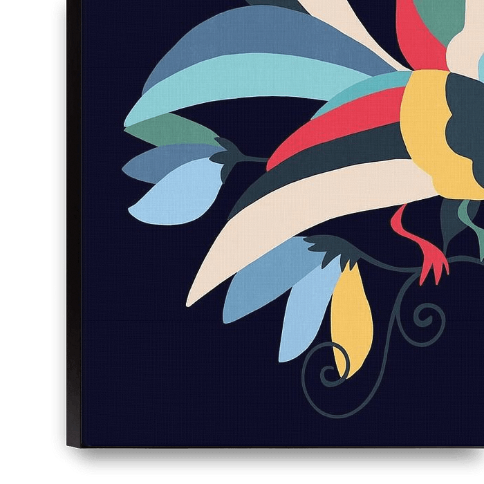 Ihre gewählte Kunst auf Leinwand, gespannt in einem Aluminiumrahmen. Schnell und einfach austauschbar für eine frische Ausstrahlung und ganz nach Ihren Wünschen.