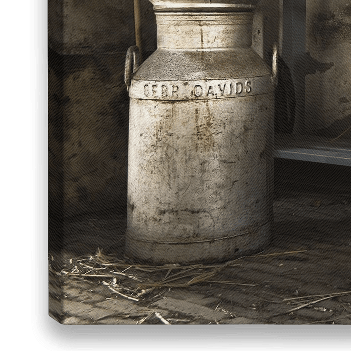 Bestelle das Foto Milchkannen in einer Scheune von Ralf Köhnke als Reproduktion auf Leinwand, Alu-Dibond, als Poster, Fototapete oder Acrylglasbild.
