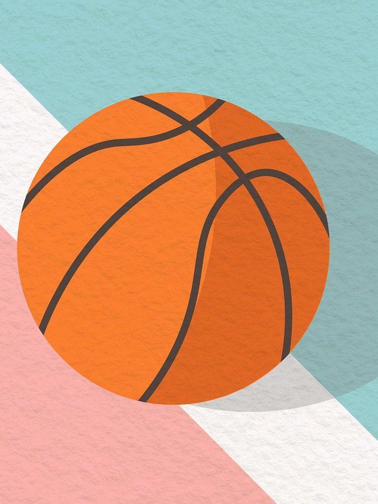 Die einfache Illustration eines Basketballs auf einem pastellfarbenen Hintergrund