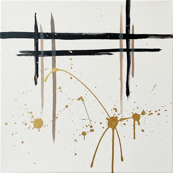 Über „Minimalistische Abstraktion. Off-White, Schwarz und Gold auf Leinen“ von STUDIO ARTSY