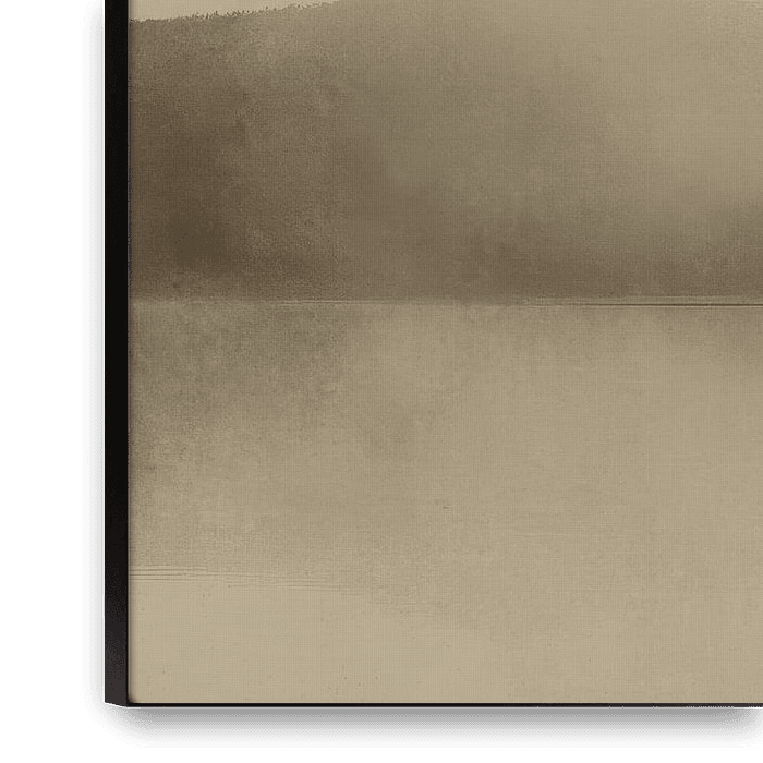 Serener See mit einer Insel und untergehender Sonne im Hintergrund, in Sepiatönen gehalten. Minimalistisch, monochromatisch, mit weichen Kanten und aquarellartiger, körniger Textur. Vintage-Ästhetik trifft auf detaillierte, ruhige Darstellung im Japandi-Stil. Ideal für Liebhaber minimalistischer Kunst, harmonischer Wohnräume und…