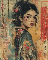 Mischtechnik-Collage "Asiatisches Mädchen". Wählen Sie Ihre eigene Größe und Material für diese Arbeit und machen es zu einem echten Blickfang für Ihr Interieur.