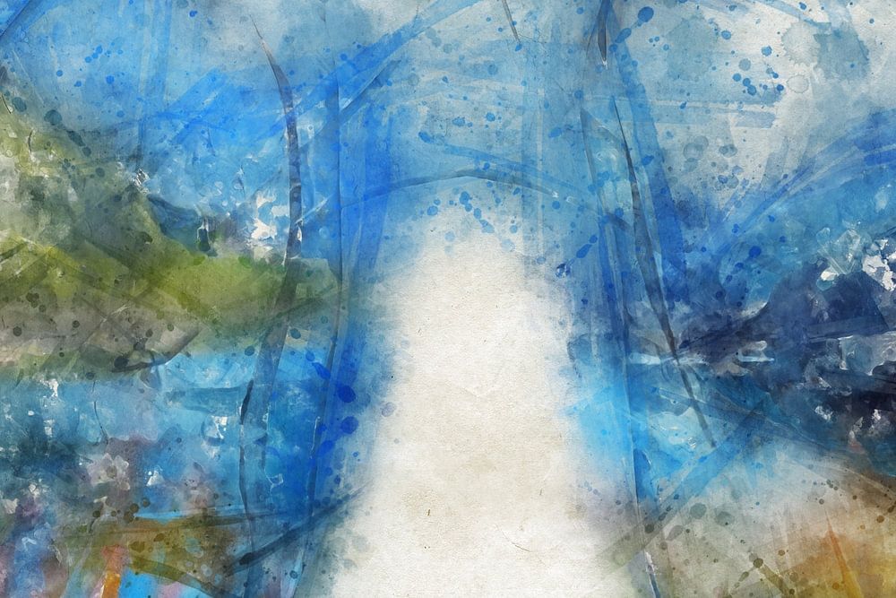 Jetzt, wo die Impfungen gegen Covid-19 in vollem Gange sind, möchte ich dies mit einer Arbeit für die Wand in Form dieses Gemäldes reflektieren, auf dem die Lunge abstrakt mit einem von schneebedeckten Berggipfeln umgebenen Bergsee gemalt ist, der für saubere und frische Luft stehen soll.