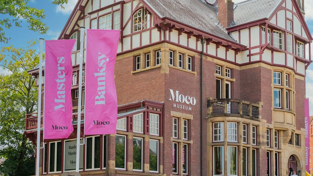 Moco-Museum mit Banksy-Kunst auf dem Museumsplatz in Amsterdam