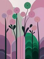 ● Exklusives Design für Werk aan de Muur / Art Heroes Erleben Sie die sanfte Eleganz dieses modernen abstrakten Kunstwerks, in dem runde Blumenformen und fließende Linien eine traumhafte Landschaft bilden. Die Farbgebung ist raffiniert, mit verschiedenen Rosa- und Lilatönen, die durch tiefe Grüntöne und dunkle Akzente wunderschön zur…