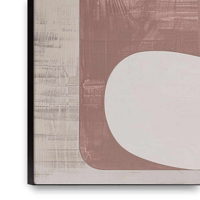 Dieses Kunstwerk kombiniert die charakteristischen Elemente des modernen Designs der Jahrhundertmitte, wie abstrakte Formen, Braun- und Schwarztöne, Rosatöne und neutrale Farben, mit einfachen Linien, die einen stilisierten und minimalistischen Look erzeugen. Die Kombination aus warmen und kühlen Tönen schafft ein harmonisches…