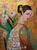 Über „Moderne Collage einer Frau mit Blumen“ von Studio Pieternel