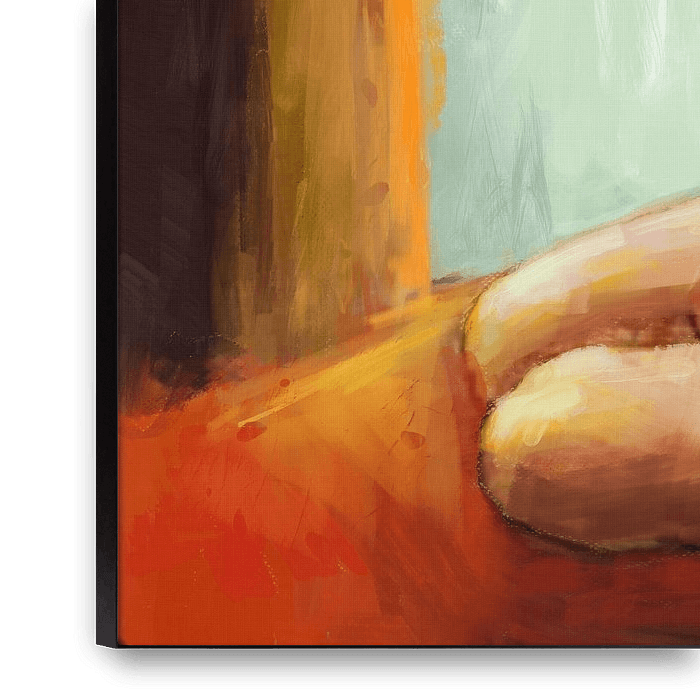 Ihre gewählte Kunst auf Leinwand, gespannt in einem Aluminiumrahmen. Schnell und einfach austauschbar für eine frische Ausstrahlung und ganz nach Ihren Wünschen.