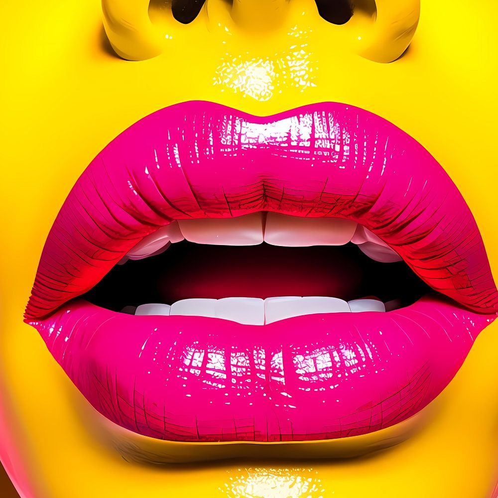 Diese moderne Interpretation der Lippen zelebriert Sinnlichkeit und weibliche Macht, Themen, die an die sexuelle Revolution und die Emanzipation der Frau in der Pop-Art-Ära erinnern. Die leuchtenden Farben und kühnen Linien machen es zu einem ausgesprochen modernen Stück, das an die glamourösen Farben der Werbung erinnert.