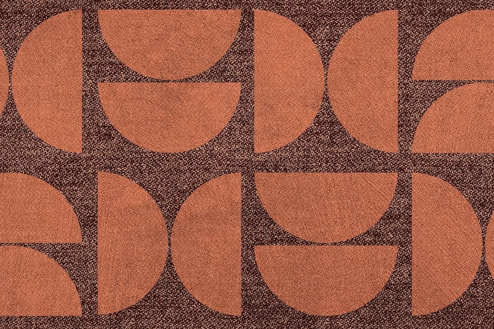 Eine Abstrakte Malerei in erdigen braunen Farben von organisch runden geometrischen Formen auf tiefer Textur mit einer Anmutung Skandinavischer Kunst aus dem Norden Europas mit einem Touch Japanischer Kultur.
