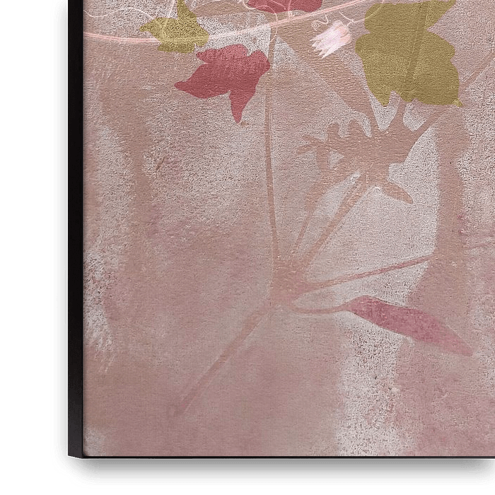 Digitale Bearbeitung von Efeublättern in warmen Rosa- und Ockertönen.