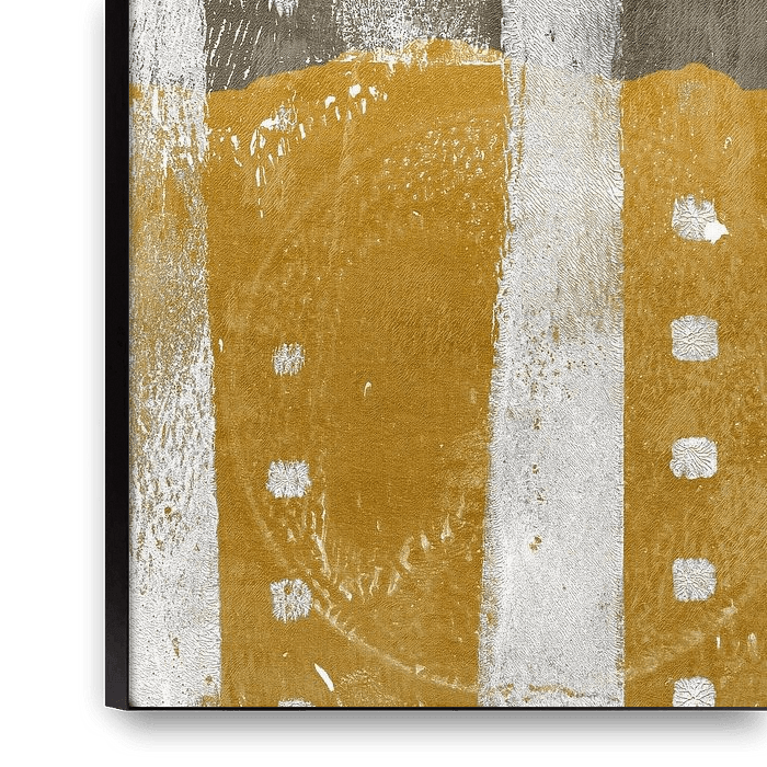 Bestelle dieses abstrakte Wandbild Moderne abstrakte Kunst. Formen in Goldgelb, warmem Braun und Weiß. von Dina Dankers als Reproduktion auf Leinwand, Alu-Dibond, als Poster, Fototapete oder Acrylglasbild.