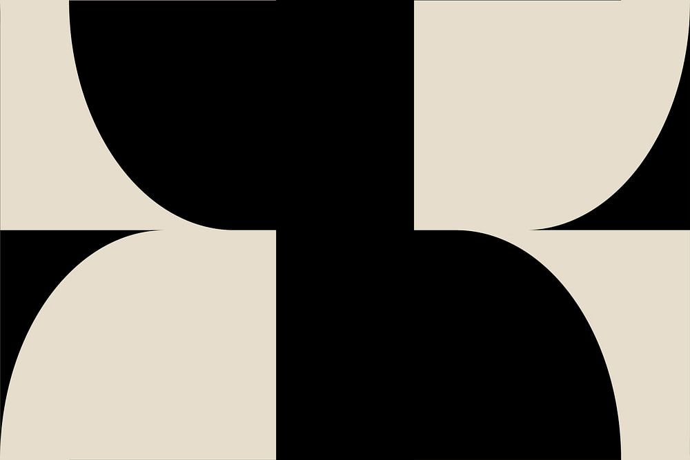 Moderne abstrakte minimalistische Kunst. Geometrische Formen in schwarzen und weißen Farben. Inspiriert durch den Bauhaus-Stil. Subtile Leinenstruktur für einen Retro-Look. Einfacher, moderner, skandinavischer, minimalistischer Einrichtungsstil.