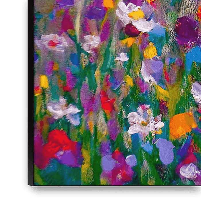 Bestelle dieses Blumen-Wandbild Moderne bunte Blumenfeldmalerei von Studio Pieternel als Reproduktion auf Leinwand, Alu-Dibond, als Poster, Fototapete oder Acrylglasbild.