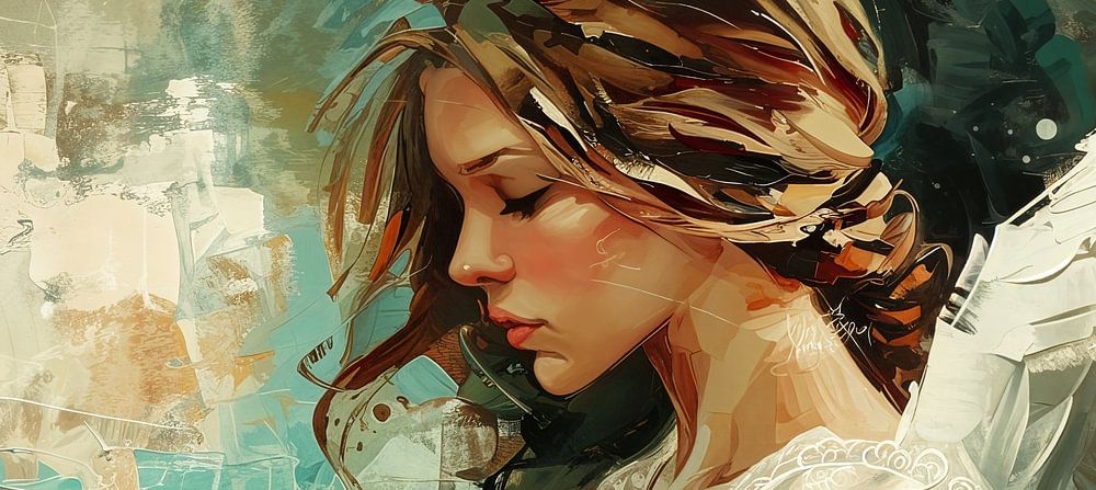 Details: Frau, Engel, Porträt, heiter, impressionistisch, Kunst, modern, Flügel, beige, weiß