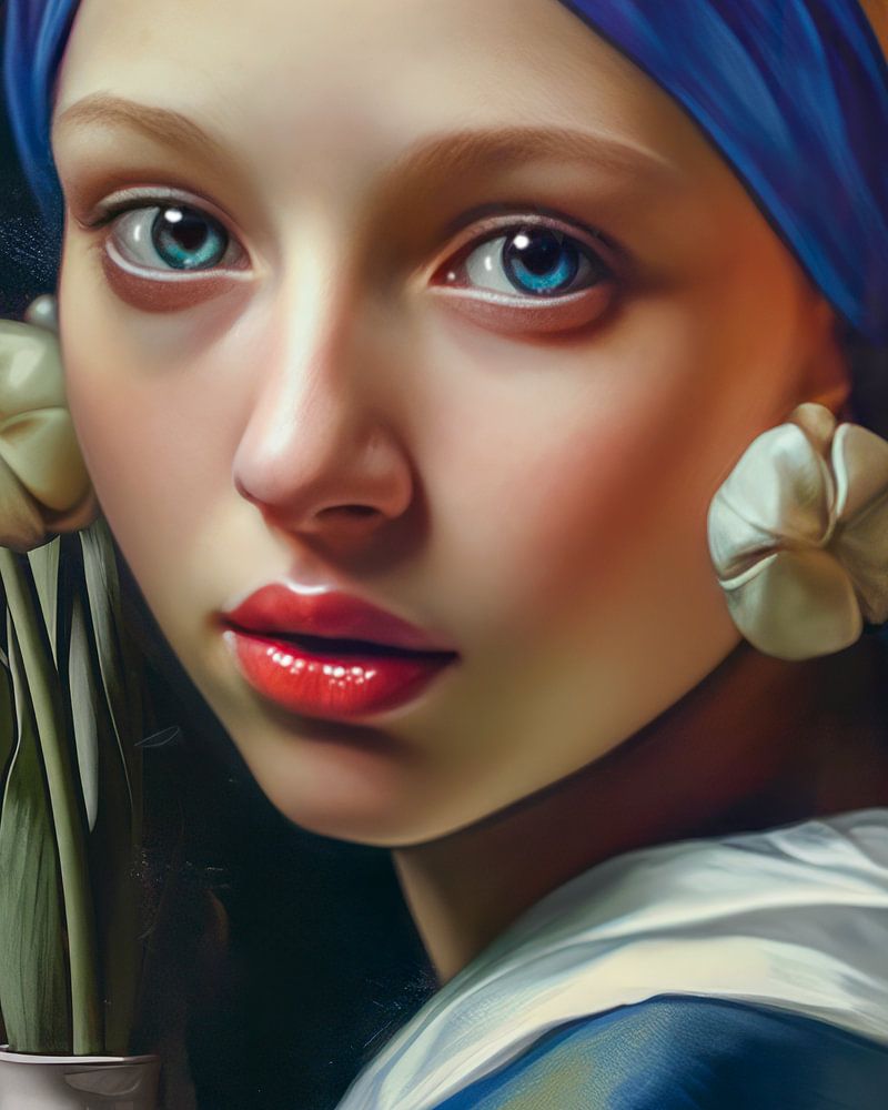 Alles in allem ist das moderne altmeisterliche Mädchen mit der Perle ein einzigartiges und zeitgemäßes Kunstwerk, in dem alte und neue Elemente zusammenkommen und ein harmonisches Ganzes bilden.
