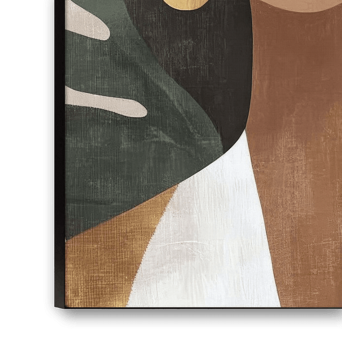 Modernes Porträt in Erdtönen, Illustration im Bohème-Stil. Ein besonderer Blickfang für Ihr Interieur! Wählen Sie das Format und das Material für dieses Werk und machen Sie es zu Ihrem eigenen.