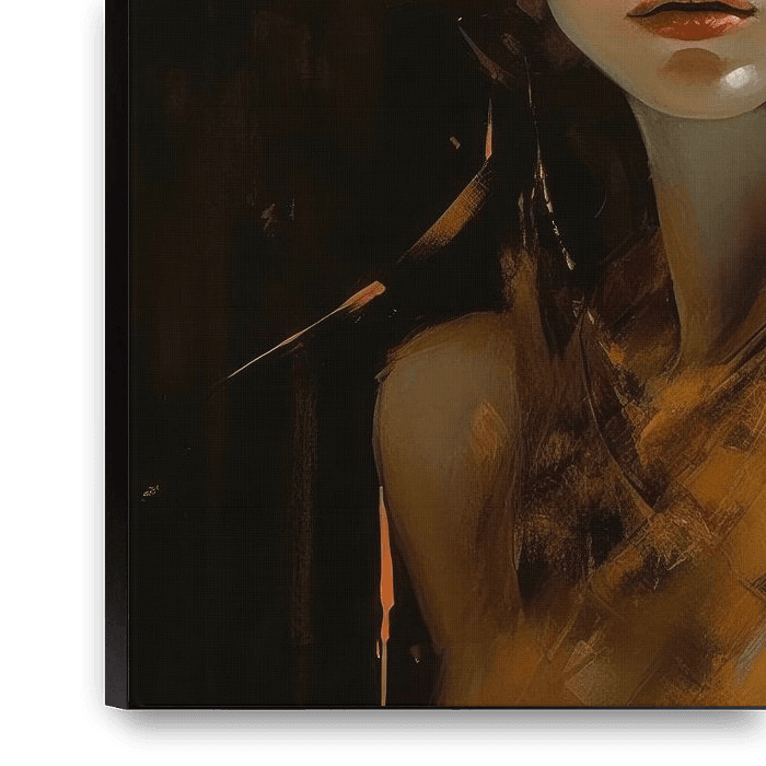 Modernes Porträt in Orange- und Goldtönen. Für einzigartige und besondere Arbeiten empfehle ich, Dibond, Artframe oder Aluminium zu wählen. Auf diese Weise kommt das Werk am besten zur Geltung.