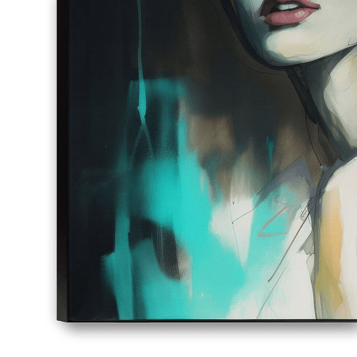 Modernes, nostalgisch angehauchtes Porträt einer jungen Frau in Schwarz-Weiß mit einem Hauch von Grün/Blau, Gelb und Orange.