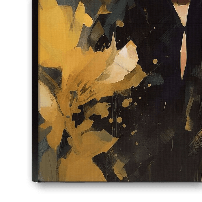 Modernes illustriertes Porträt in Schwarz und Gelb mit einem Hauch von Grün und Lila. Ein echter Blickfang an Ihrer Wand, besonders wenn Sie ein großes Format wählen!