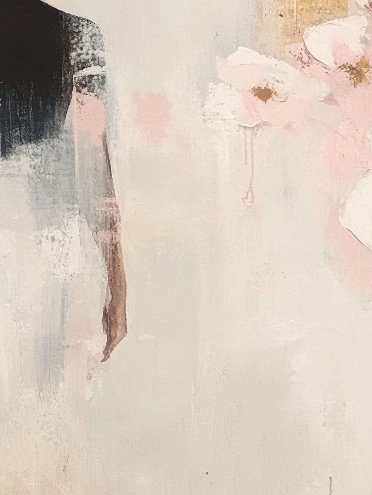 Modernes und abstraktes Portrait in Rosa und Gold. Ein besonderer Blickfang für Ihr Interieur! Wählen Sie das Format und das Material für dieses Werk und machen Sie es zu Ihrem eigenen.